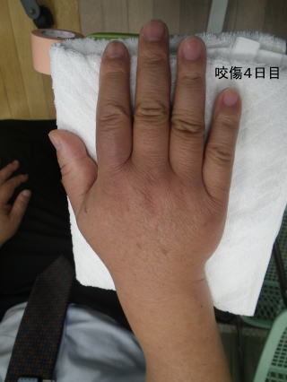 | 蜂窩織炎 皮膚の傷から細菌感染(多くはブドウ球菌)を起こして皮下に炎症が広がり、発赤、熱感、腫脹、痛みを伴って拡大していきます。趾間部の真菌症や犬猫の咬傷、皮膚の小さな外傷などが引き金となって起こることが多いです。 丹毒(溶連菌)と異なり辺縁(境界のこと)がはっきりとせず不分明です。捻髪音を触知する場合は、クロストリディウムなどのガス壊疽菌が原因となっており、緊急の手術や治療を要します。 通常の蜂窩織炎であれば、抗生剤の点滴を行います。軽症の場合は、経口の抗生剤を服用します。抗生剤の種類は、点滴の場合はセファロスポリン系、ロセフィンなどを用います。 犬猫咬傷の場合は、オーグメンチン250SR+サワシリン250mgを3回分三で服用します。ペニシリンアレルギーの場合は、クラビット(もしくはアベロックス)+クリンダマイシンを使います。ただし、小児、妊婦には使えません。 最近、蜂窩織炎などの感染症の診療を断る医療機関が増えてきました。先日も近所の整形外科に行ったところ断られたそうです。困った時代になってきました。当院でも取り扱えるのは軽症までで、中等症以上は日赤などの救急対応となります。 なお、最近は皮膚科がこの種の感染症に対応するようにシフトしてきています。 ![]() ![]() ![]() ![]() 患者さんより提供して頂いた写真です。猫咬傷で、最初の写真は翌日で母指〜示指〜手背に発赤腫脹が見られます。咬傷二日目は一気に炎症が広がっています。診察時は前腕の半分までリンパ管炎は肘より上まで広がっていました。直ちに抗生剤の点滴静注を行いました。診察時は平熱でしたが、夜は38度台の発熱となりました。翌日は解熱し快復つつあります。一日でこんなに悪化するのです。感染症が如何に恐ろしいかよく分かる写真です。その後、治療により順調に改善してきています。 |